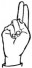 На ћирилици написано ДРАГО КЛИНЦОВ састоји се из 12 слова [?]. Исписано ћириличном једноручном азбуком за глувонеме: